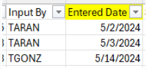This column has been inserted into the format next to “Input By”. The new field is column AT in the excel report.