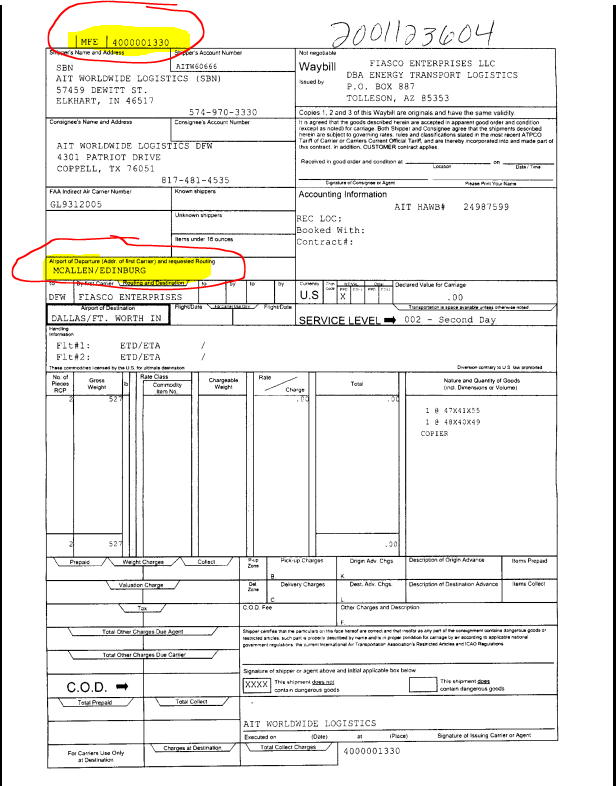 - When we receive a shipment from outside carrier along with the AIT BOL.