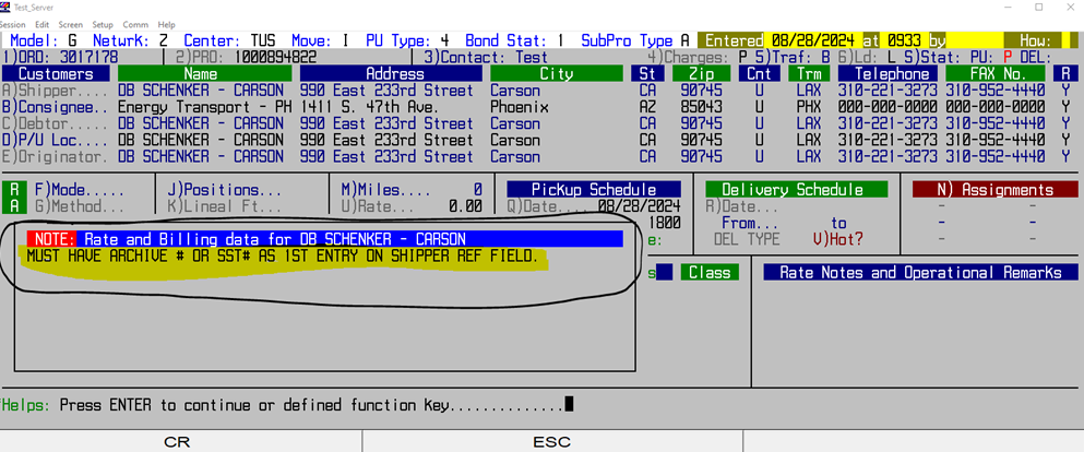 When you do SHIFT F8 the below populates and instructions are to enter the Archive # or SST# from the customers DO as the 1st entry on the Shipper Reference field.