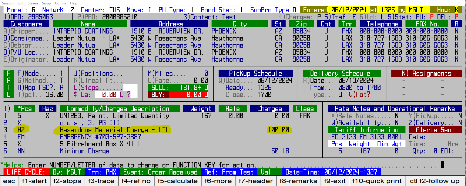 Missing any of these steps will prompt Alpha Truck NOT to AUTO POPULATE the HAZ MAT fee and you will manually need to enter via HX charge code.