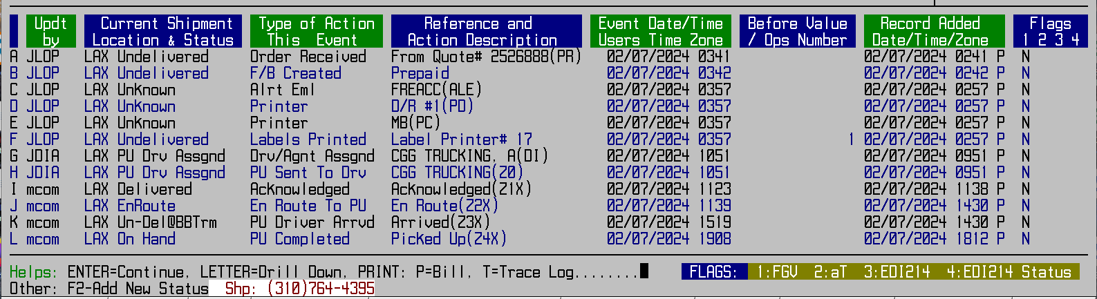 Below is a small example of proper process and steps for assigning and pick up updates from driver. This supports our efforts in reading our platform and having all information on hand without having to reach out to someone for an update.