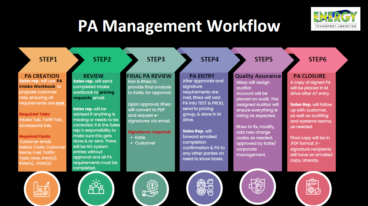 PAs will not be entered without internal and external approval, signatures and without this ENERGY PA TEMPLATE. It is your responsibility to make sure these requirements are met before system entry.