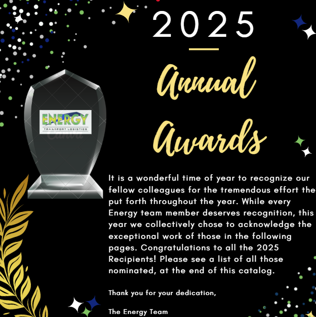 It is a wonderful time of year to recognize our fellow colleagues for the tremendous effort they put forth throughout the year. While every Energy team member deserves recognition, this year we collectively chose to acknowledge the exceptional work of those listed in the our annual awards catalogue.